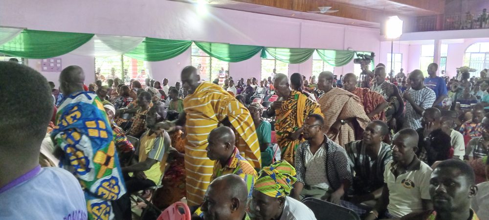 Ranking member of Food and Agriculture, Hon Eric Opoku who addressed the farmers charged them not to be influenced by the government’s lofty producer price, stressing the increment was rather a shortchange and that they should have been getting over GHS2,000.00 per bag and not GHS1,308.